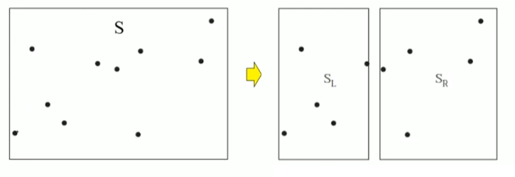 먼저 x좌표를 기준으로 정렬된 점 배열 S를 분할합니다.